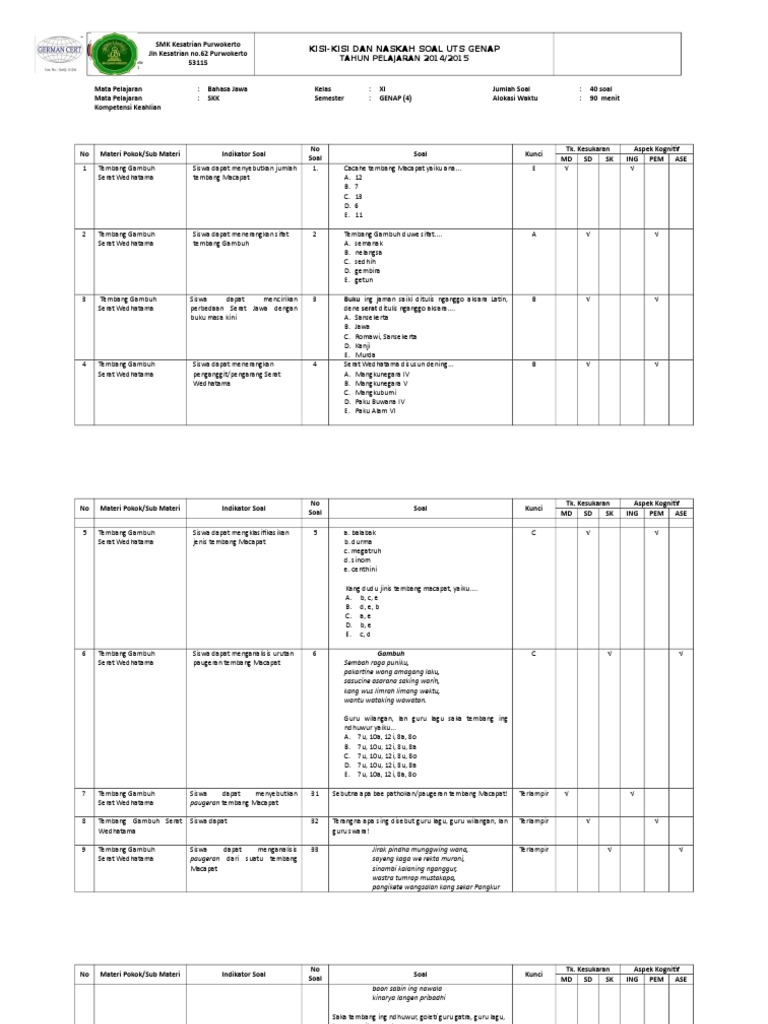 Paugerane Temba Wps Office Doc Paugerane Tembang Gambuh U27a5 Guru Gatrane Ana 5 Tegese Saben Pada Bait Dumadi Saka 5 Gatra Baris U27a5 Guru Wilangane 7 Course Hero from www.coursehero.com Panemu utawa tanggapan marang isine tembang gambuh kasebut yaiku tembang gambuh kuwi surasane apik, amarga paring pitutur kang becik lan bisa. Tembang gambuh tembang yang menggambarkan keadaan manusia yang sudah mulai membangun sebuah rumah tangga menuju keluarga yang saling melengkapi dan bersinergi secara harmonis. Barang polah ingkang nora jujur. Tulisna paugerane tembang macapat 1.gambuh 2.asmaradhana 3.pucung 4.pangkur 5.maskumambang. Katitik saka paugerane tembang ing ndhuwur diarani tembang brainly co id. Tembang gambuh pengertian watak paugeran prasstyle com from i0.wp.com. Sejarah tembang gambuh lengkap video & contoh. Paugeran utawa aturan ing panulisan tembang macapat miturut padmoesoekotjo 1953.